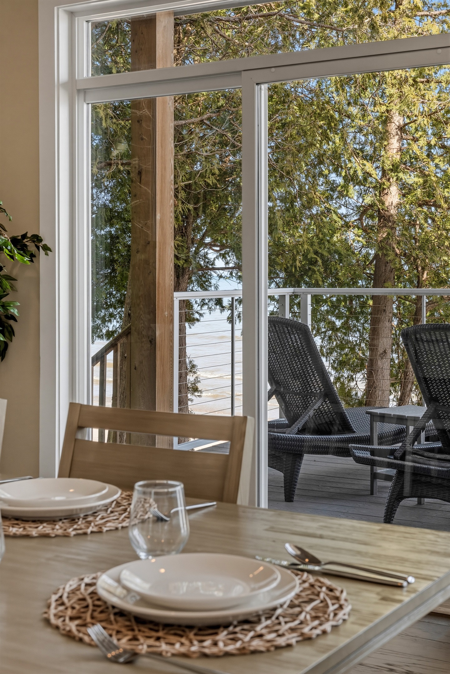 This home delivers a clean, modern lakehouse experience that actually stands out. Think minimalist European design meets Wisconsin shoreline — not your typical cluttered cabin. It’s built for groups who want space, light, and a calm, elevated feel.