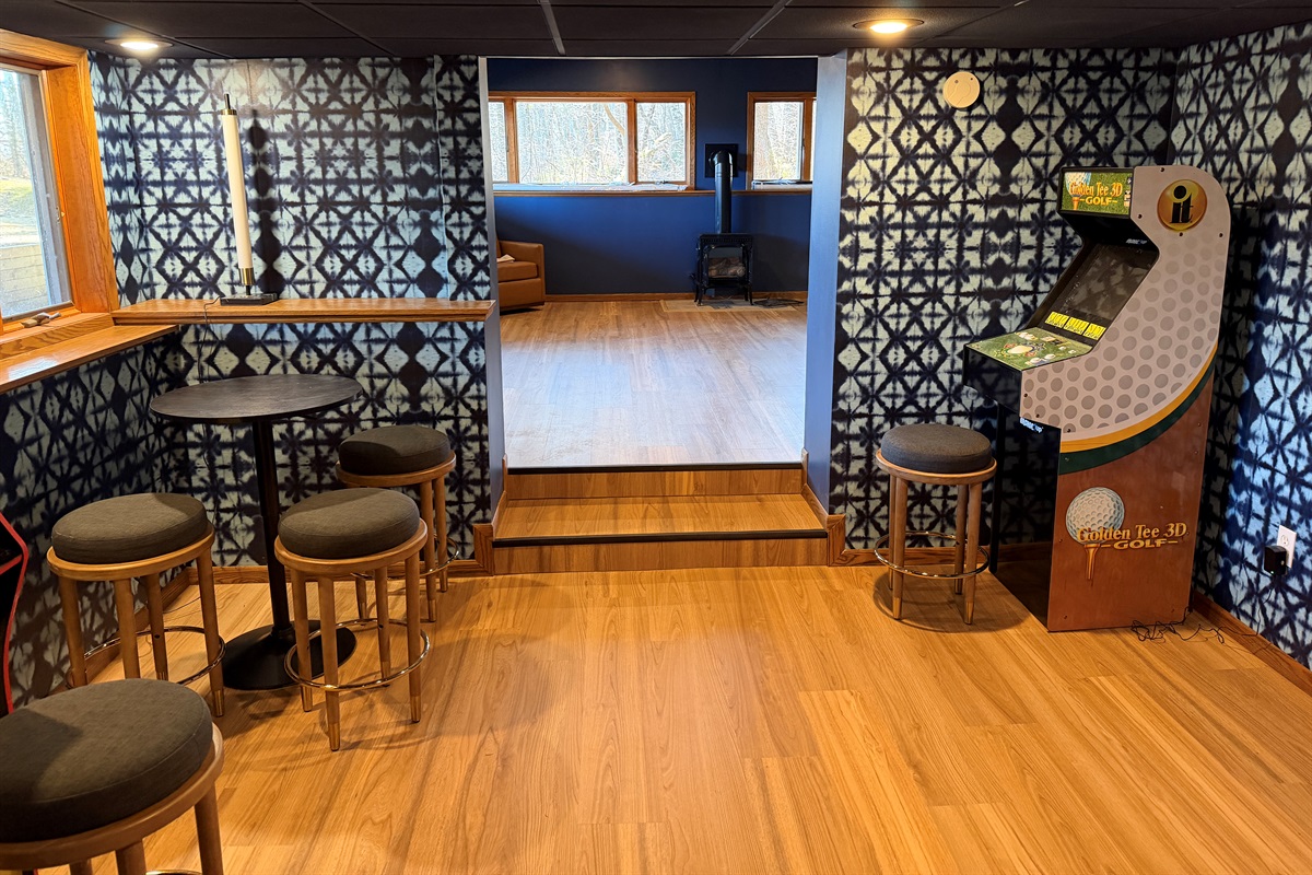 - Spaces to connect & unwind — multiple living areas, a fireplace with panoramic lake views, and a lower-level game room with foosball, ping pong, air hockey, and a bar